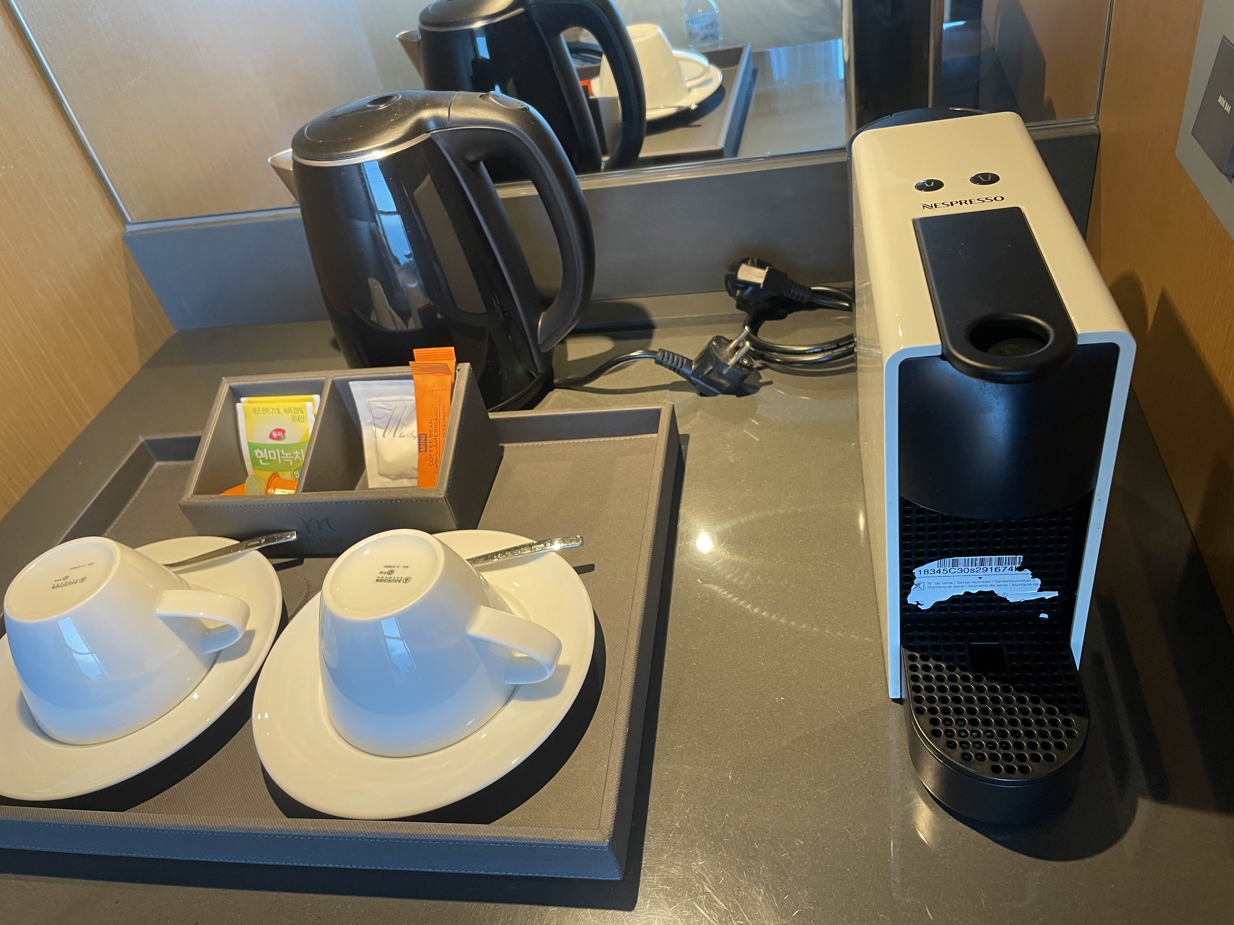 가습기를 요청해서 가습기도 수령했으며 객실에는 캡슐커피머신도 놓여져있다.
