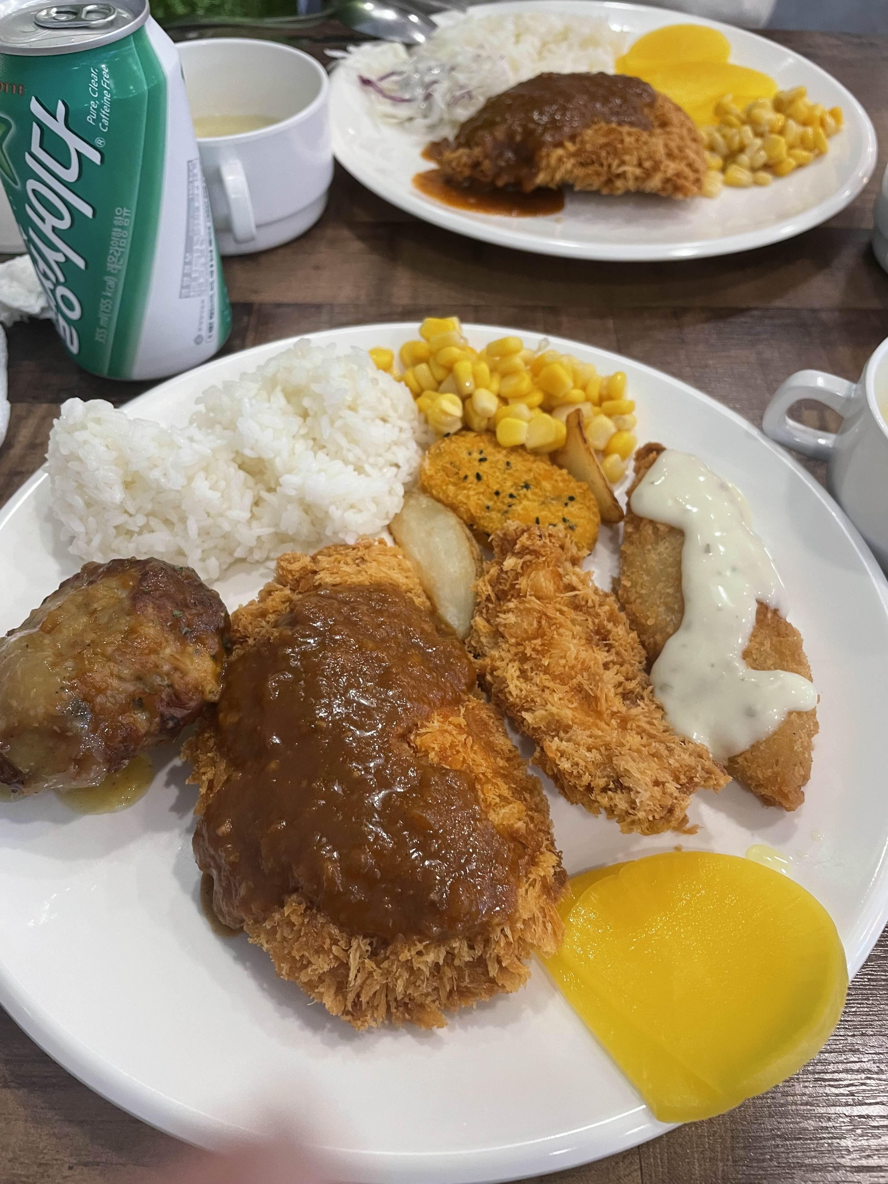 돈까스, 생선까스, 치킨까스, 함박스테이크 등에서 부터 샐러드류와 스프, 카레 등 한끼 식사 배불리 할 수 있는