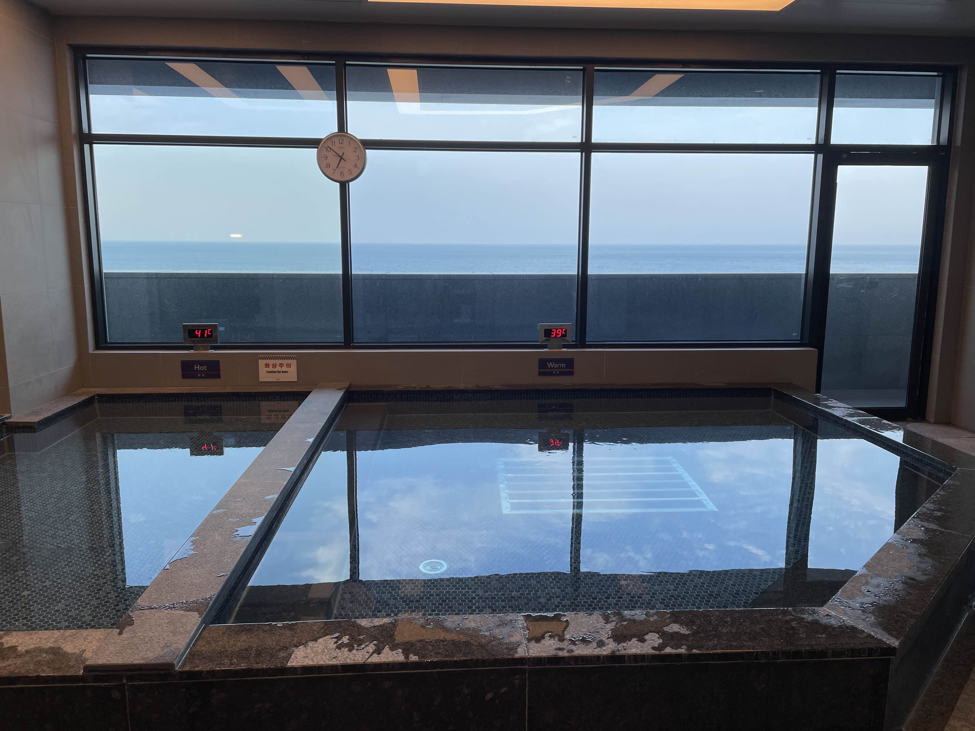 탕에서 일어서야지만 저멀리 바다가 보이는 뷰는 다소 아쉽긴 했다.