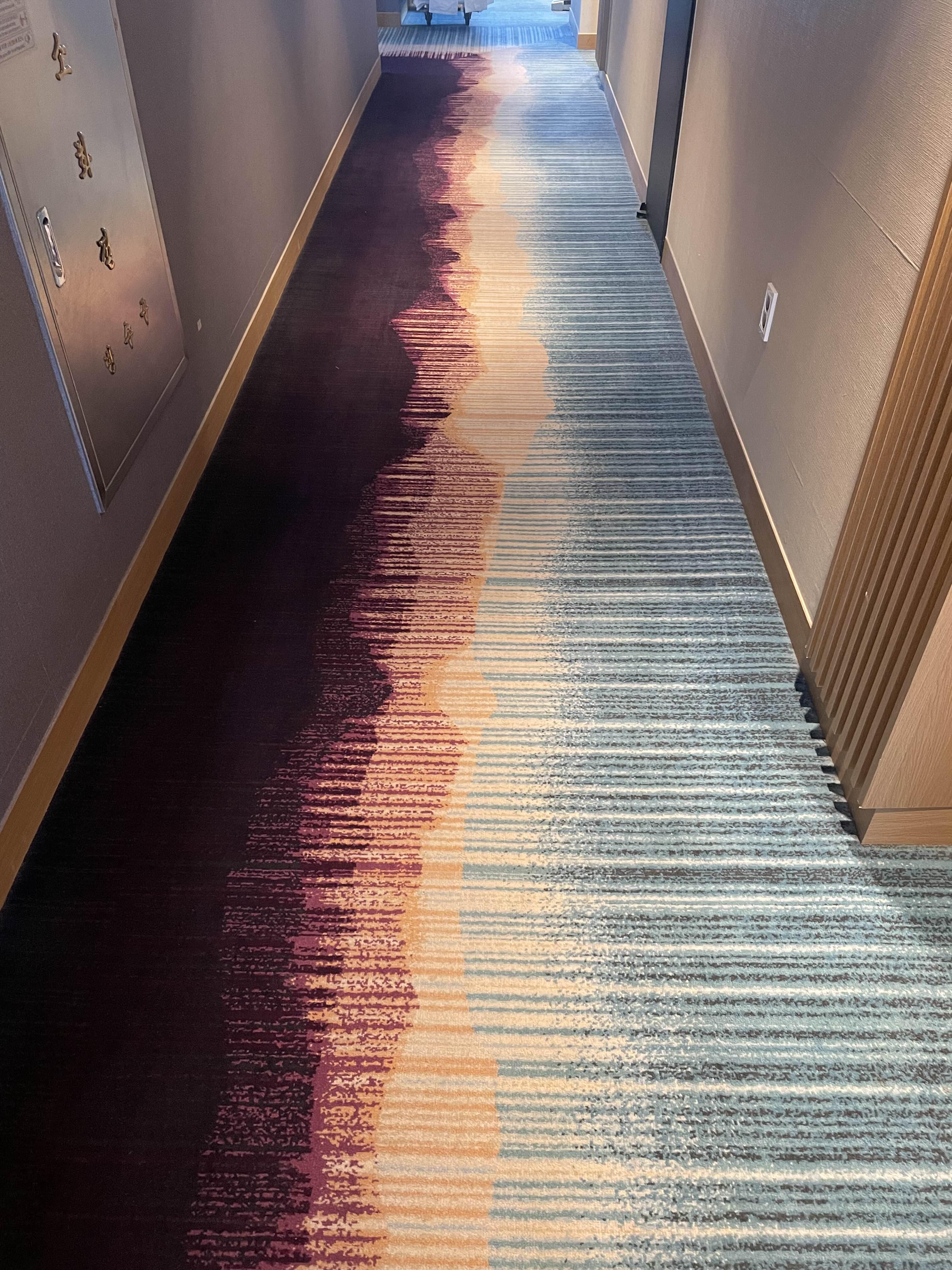 카페트의 독특한 무늬가 눈에 띄는데 객실 벽에서도 비슷한 패턴을 볼수 있다.