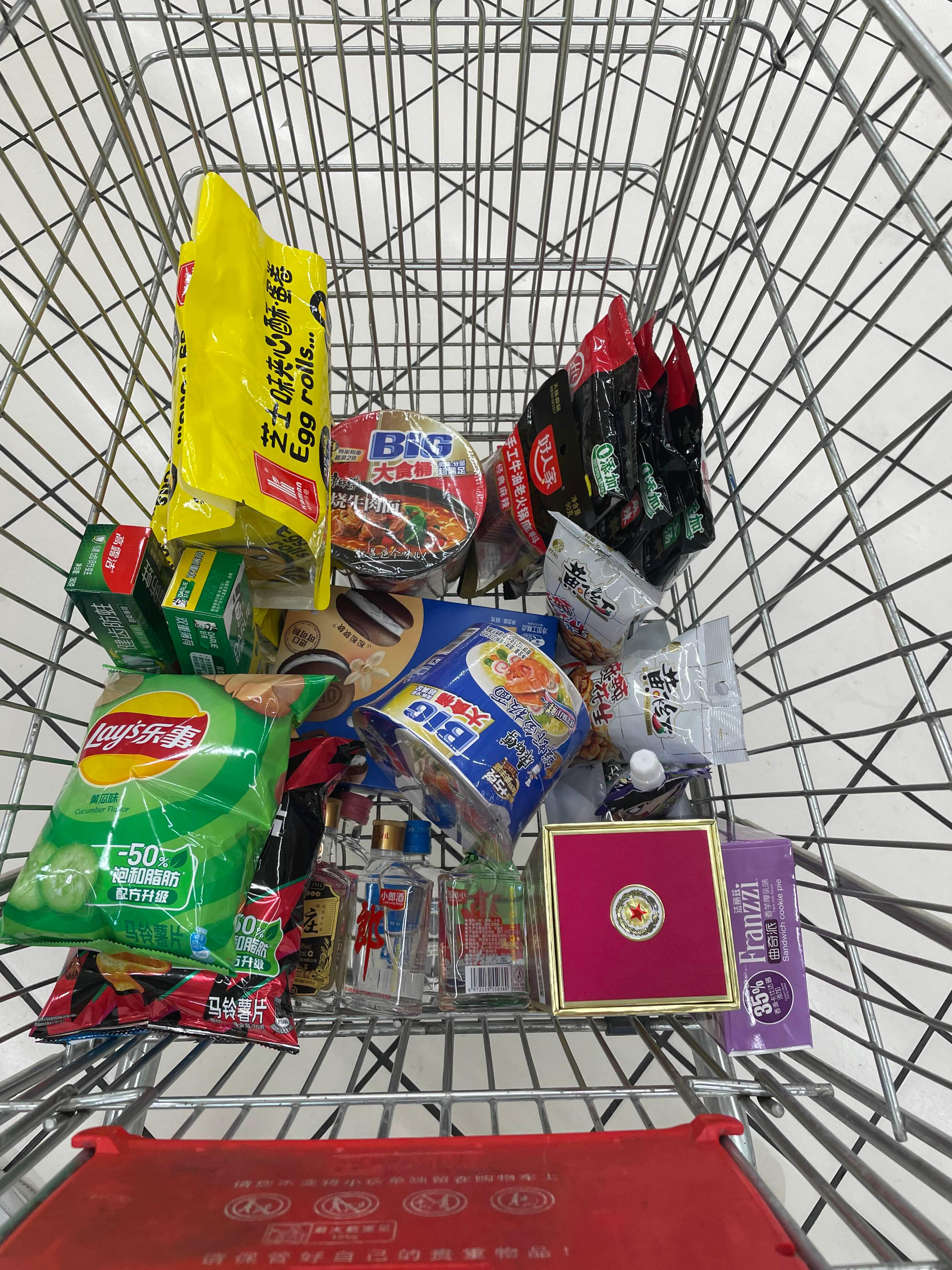 사진에는 미처 담지 못했지만 술코너가 굉장히 크게 있어서 중국술도 좀 담았고 아저씨 치약도 몇개 담았다.