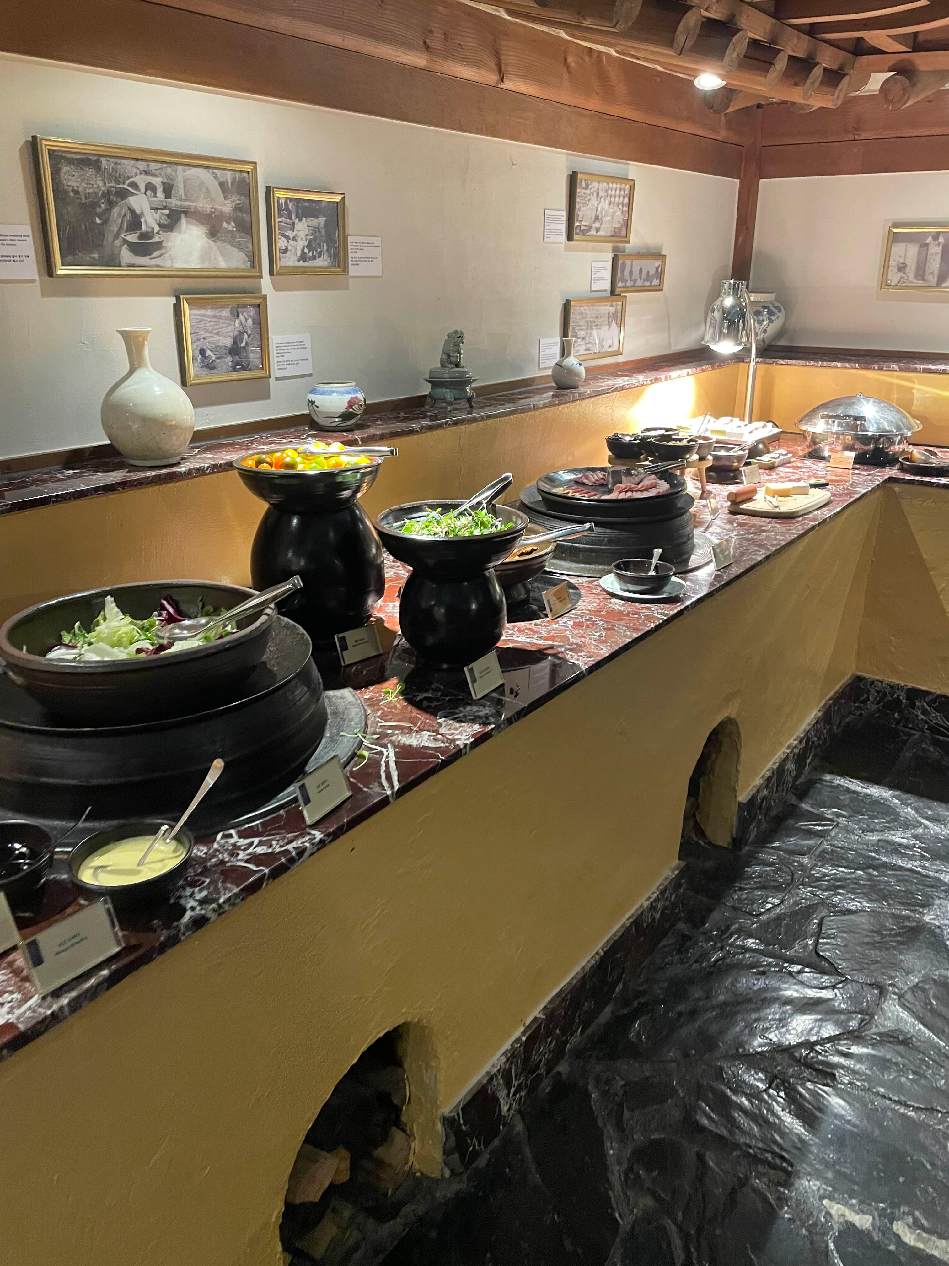 음식을 놓은 곳은 전통주택의 아궁이 같은 컨셉인가보다.